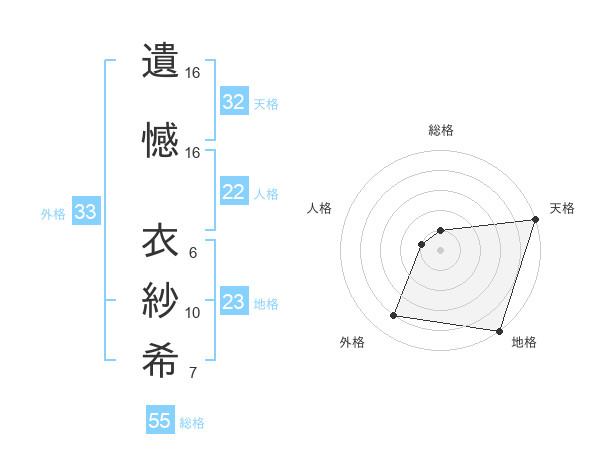 遺憾 衣紗希さんの地格は23画の5点