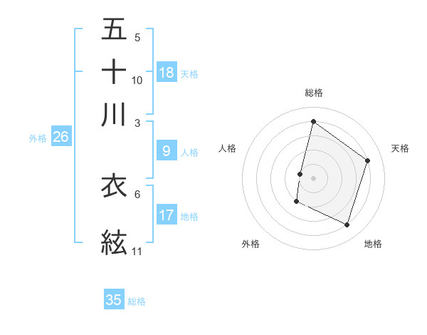 五十川 衣絃さんを姓名の画数から五運を鑑定