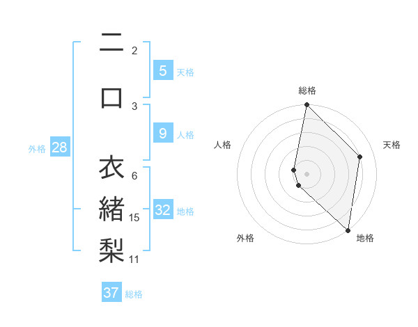 二口 衣緒梨さんを姓名の画数から五運を鑑定