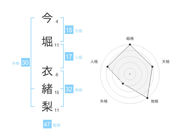 今堀 衣緒梨さんを姓名の画数から五運を鑑定