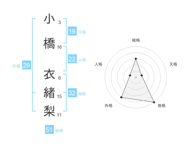 小橋 衣緒梨さんを姓名の画数から五運を鑑定