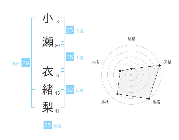 小瀬 衣緒梨さんを姓名の画数から五運を鑑定