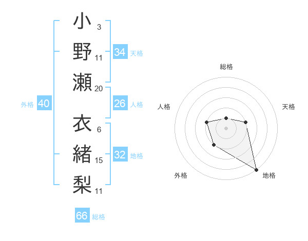 小野瀬 衣緒梨さんの地格は32画の5点!