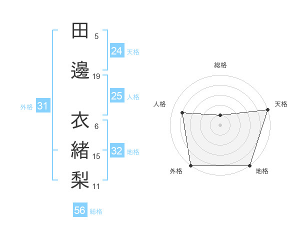 田邊 衣緒梨さんの天格は24画の5点