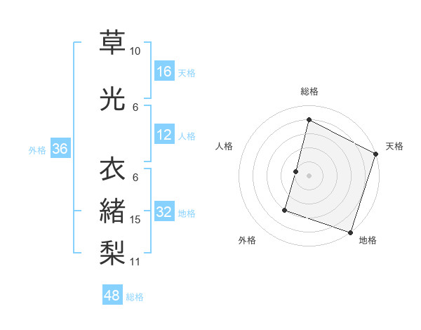 草光 衣緒梨さんの天格は16画の5点!