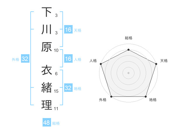 下川原 衣緒理さんを姓名の画数から五運を鑑定
