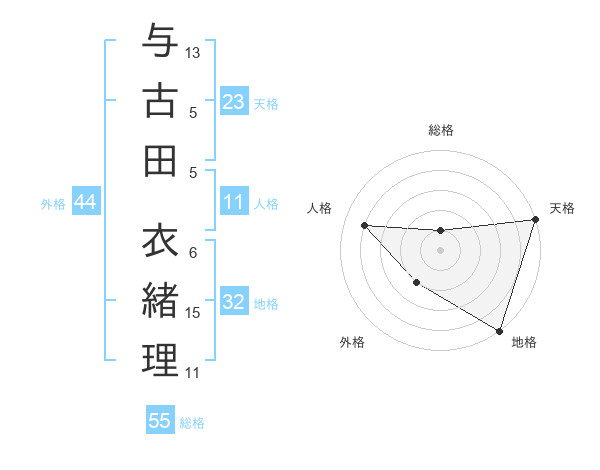 与古田 衣緒理さんを姓名の画数から五運を鑑定