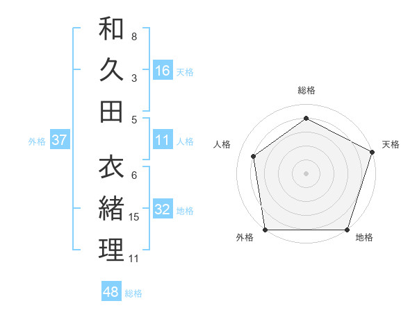 和久田 衣緒理さんを姓名の画数から五運を鑑定