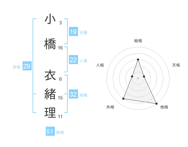 小橋 衣緒理さんを姓名の画数から五運を鑑定