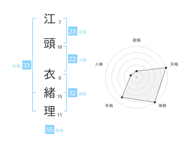 江頭 衣緒理さんを姓名の画数から五運を鑑定