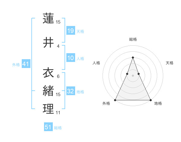 蓮井 衣緒理さんの総格は51画の3点