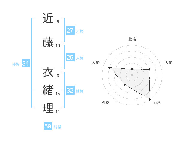 近藤 衣緒理さんを姓名の画数から五運を鑑定