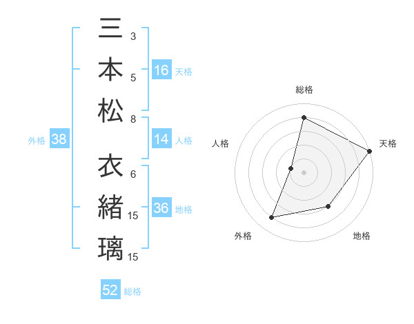 三本松 衣緒璃さんを姓名の画数から五運を鑑定