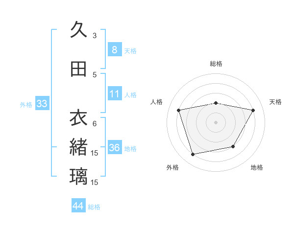 久田 衣緒璃さんの総格は44画の2点!