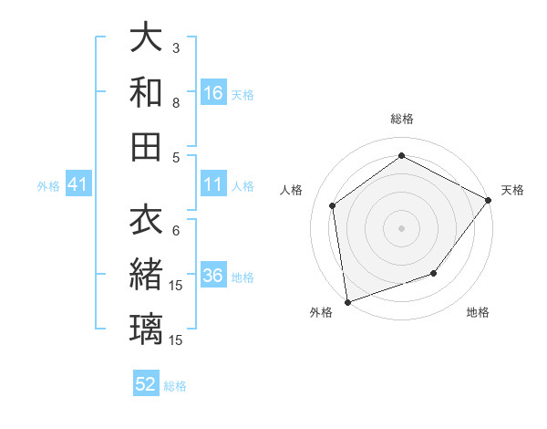 大和田 衣緒璃さんを姓名の画数から五運を鑑定