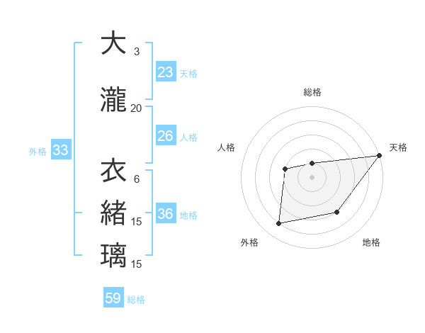 大瀧 衣緒璃さんの外格は33画の4点!