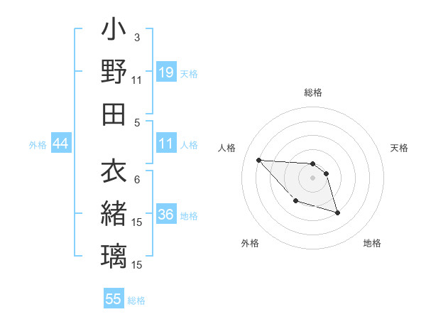 小野田 衣緒璃さんを姓名の画数から五運を鑑定