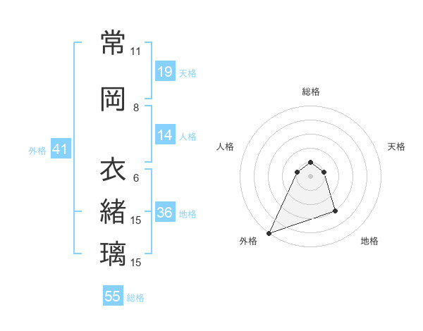 常岡 衣緒璃さんの外格は41画の5点!