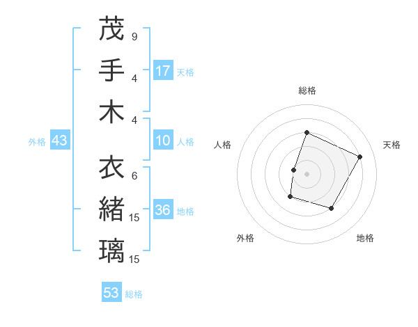 茂手木 衣緒璃さんを姓名の画数から五運を鑑定