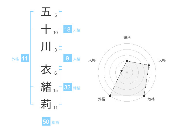 五十川 衣緒莉さんを姓名の画数から五運を鑑定