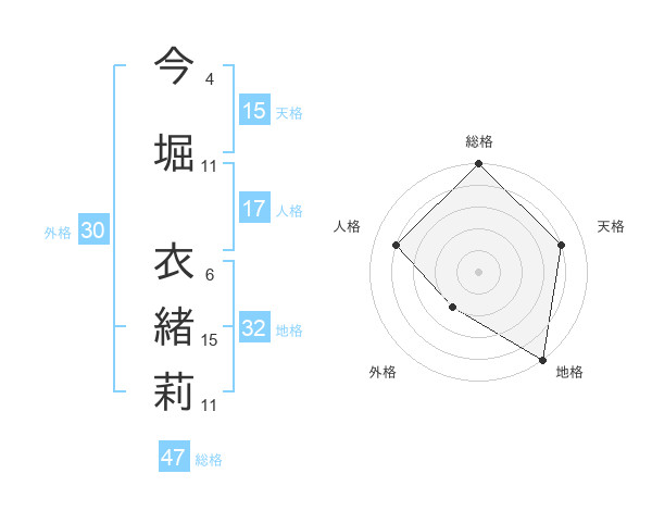 今堀 衣緒莉さんを姓名の画数から五運を鑑定