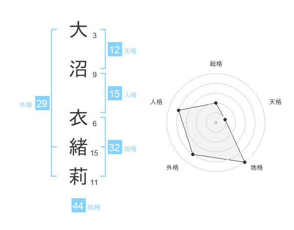 大沼 衣緒莉さんを姓名の画数から五運を鑑定