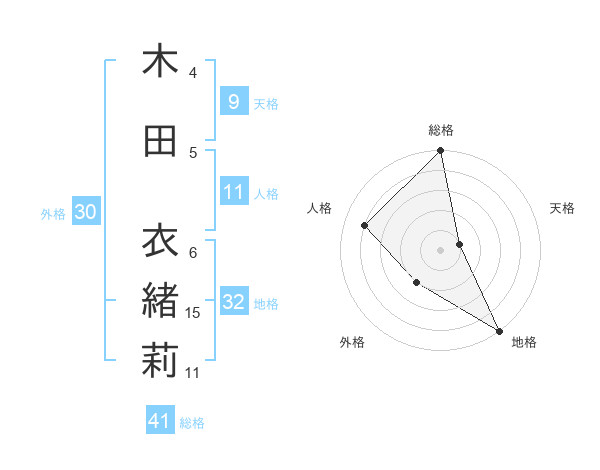 木田 衣緒莉さんを姓名の画数から五運を鑑定