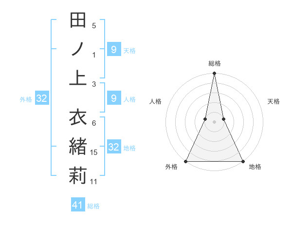 田ノ上 衣緒莉さんの外格は32画の5点!