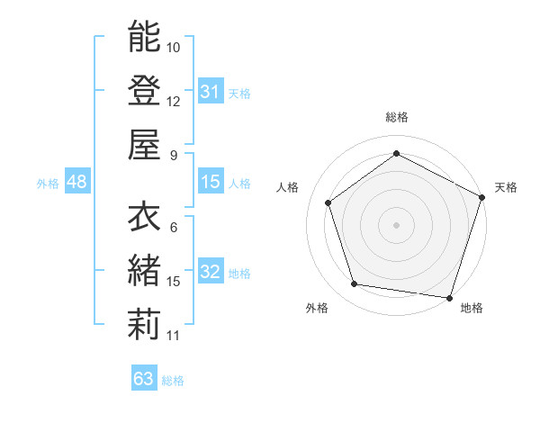 能登屋 衣緒莉さんを姓名の画数から五運を鑑定