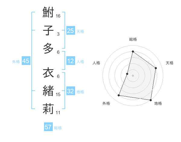鮒子多 衣緒莉さんの総格は57画の4点!