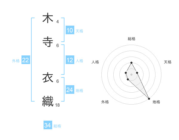 木寺 衣織さんを姓名の画数から五運を鑑定