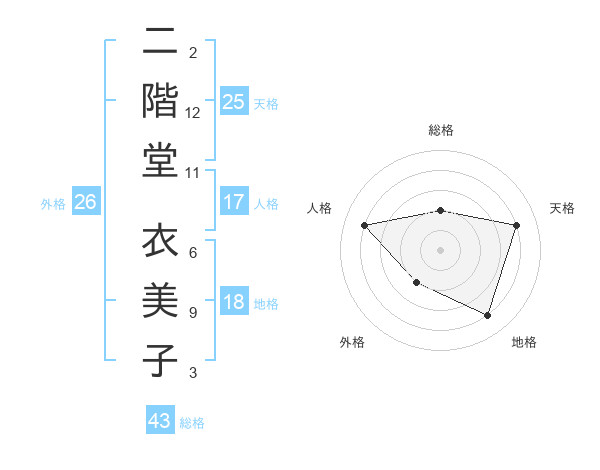 二階堂 衣美子さんを姓名の画数から五運を鑑定