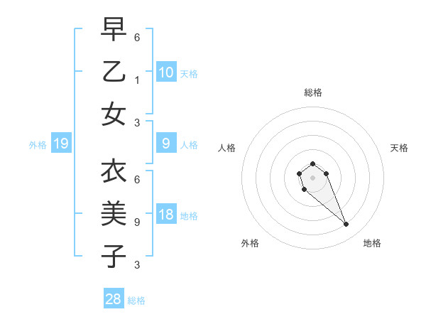 早乙女 衣美子さんを姓名の画数から五運を鑑定