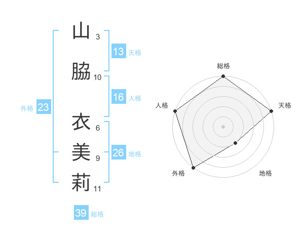 山脇 衣美莉さんを姓名の画数から五運を鑑定