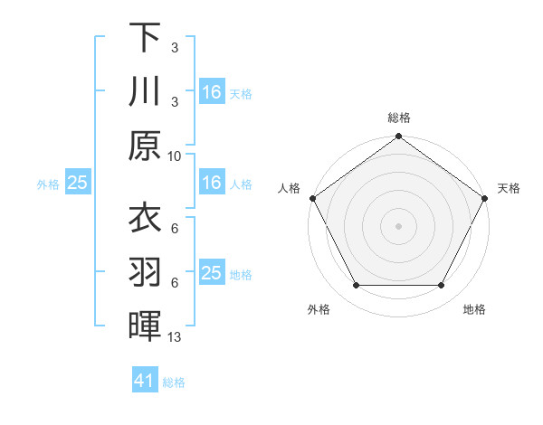 下川原 衣羽暉さんを姓名の画数から五運を鑑定