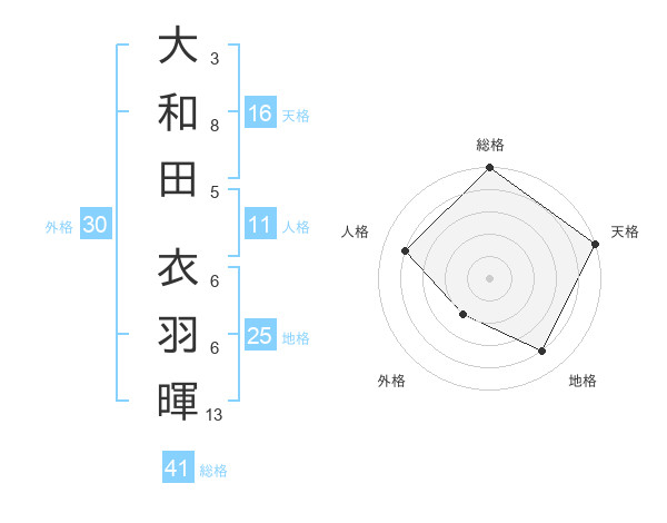 大和田 衣羽暉さんの総格は41画の5点!