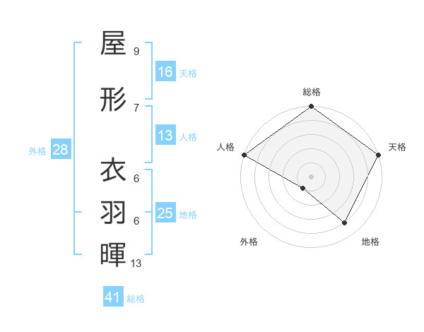 屋形 衣羽暉さんを姓名の画数から五運を鑑定