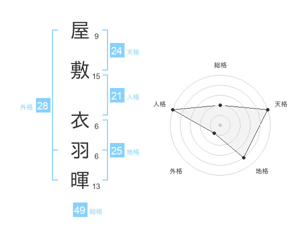 屋敷 衣羽暉さんを姓名の画数から五運を鑑定