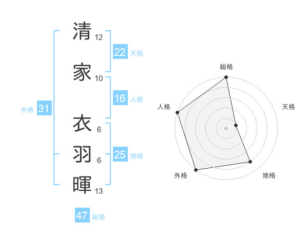 清家 衣羽暉さんを姓名の画数から五運を鑑定
