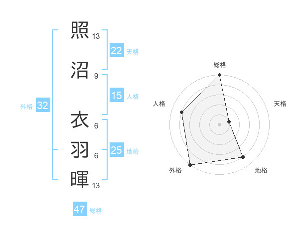 照沼 衣羽暉さんを姓名の画数から五運を鑑定