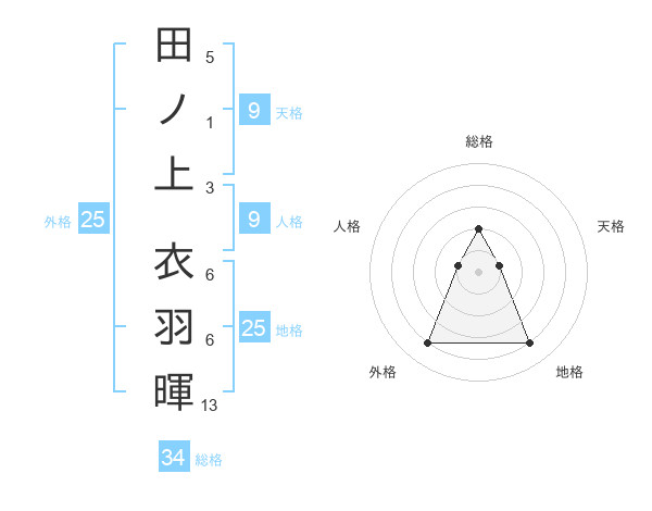 田ノ上 衣羽暉さんの総格は34画の2点!