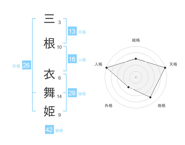 三根 衣舞姫さんを姓名の画数から五運を鑑定