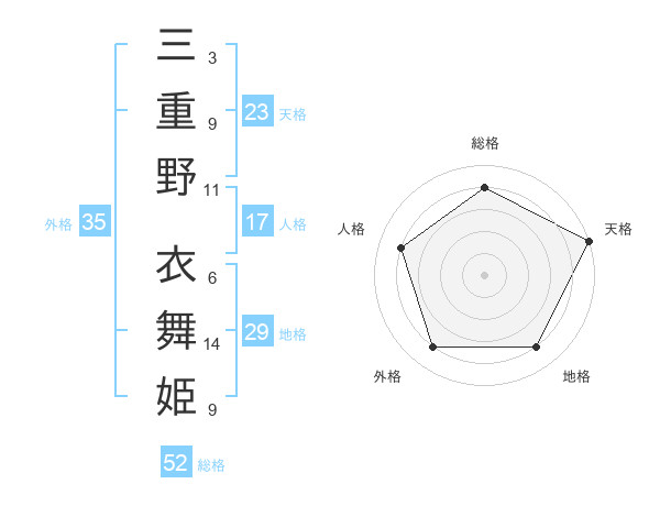 三重野 衣舞姫さんを姓名の画数から五運を鑑定