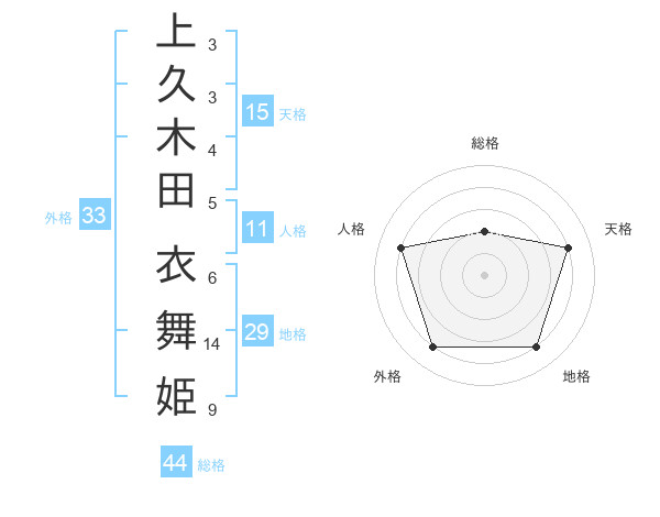 上久木田 衣舞姫さんを姓名の画数から五運を鑑定