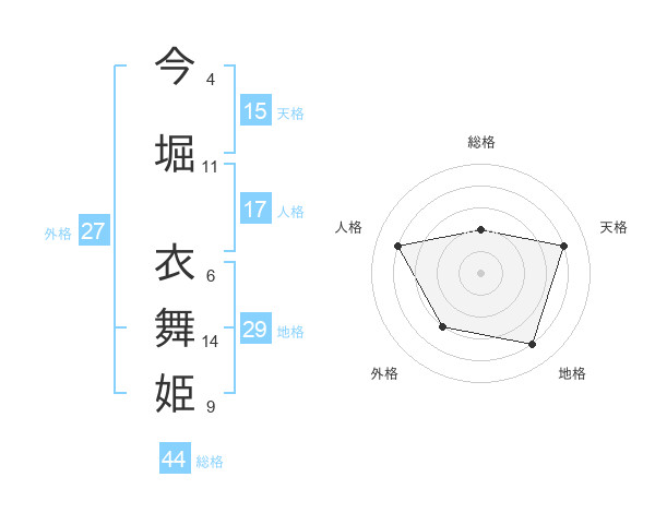 今堀 衣舞姫さんを姓名の画数から五運を鑑定