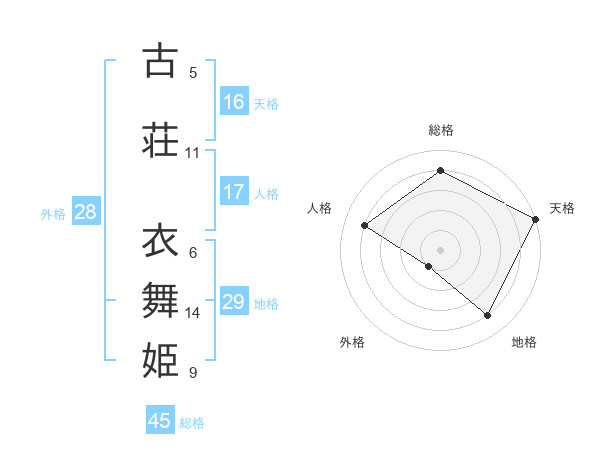 古荘 衣舞姫さんを姓名の画数から五運を鑑定