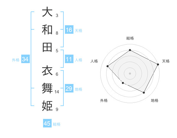 大和田 衣舞姫さんを姓名の画数から五運を鑑定