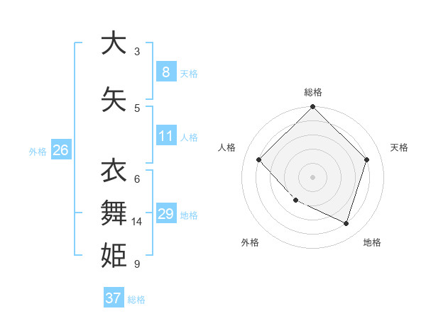 大矢 衣舞姫さんを姓名の画数から五運を鑑定