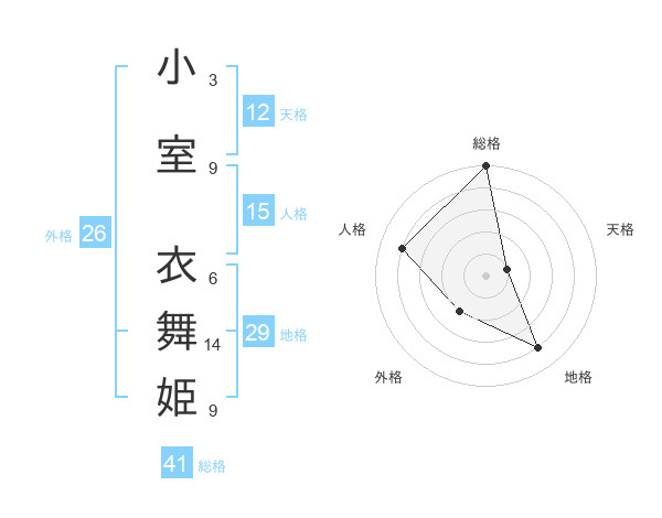 小室 衣舞姫さんを姓名の画数から五運を鑑定