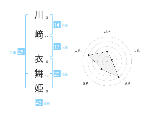 川﨑 衣舞姫さんを姓名の画数から五運を鑑定